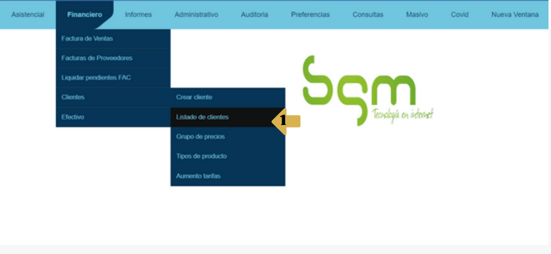1. Ingresar al menú: Financiero/clientes/Crear cliente- listado de clientes