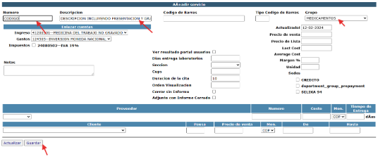 Ingrese correctamente los datos (nombre, presentación, etc.).
