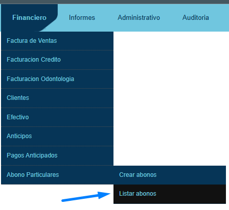 Ingrese al menú: FINANCIERO / ABONOS PARTICULARES / LISTADO DE ABONOS.
