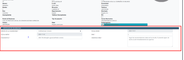 Se deben diligenciar correctamente los datos clínicos y días de incapacidad.