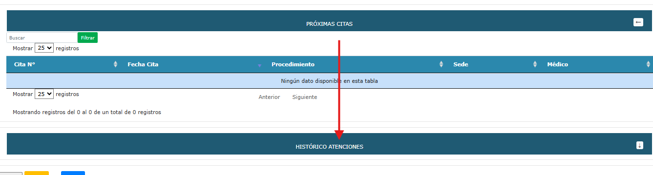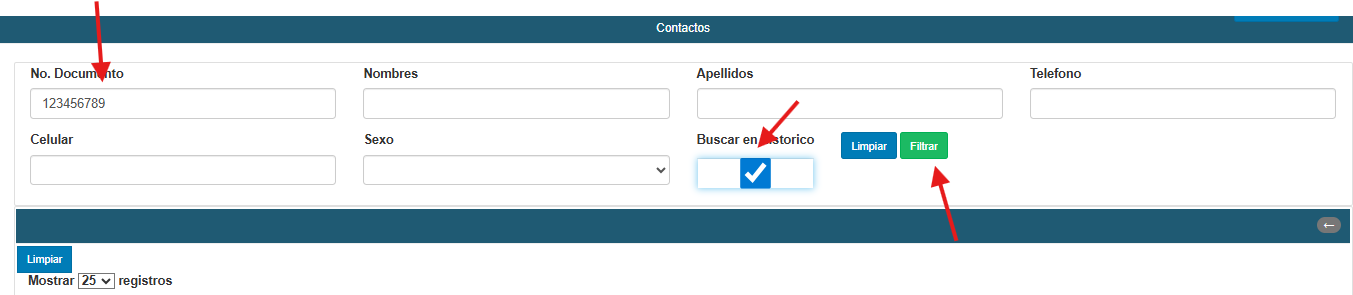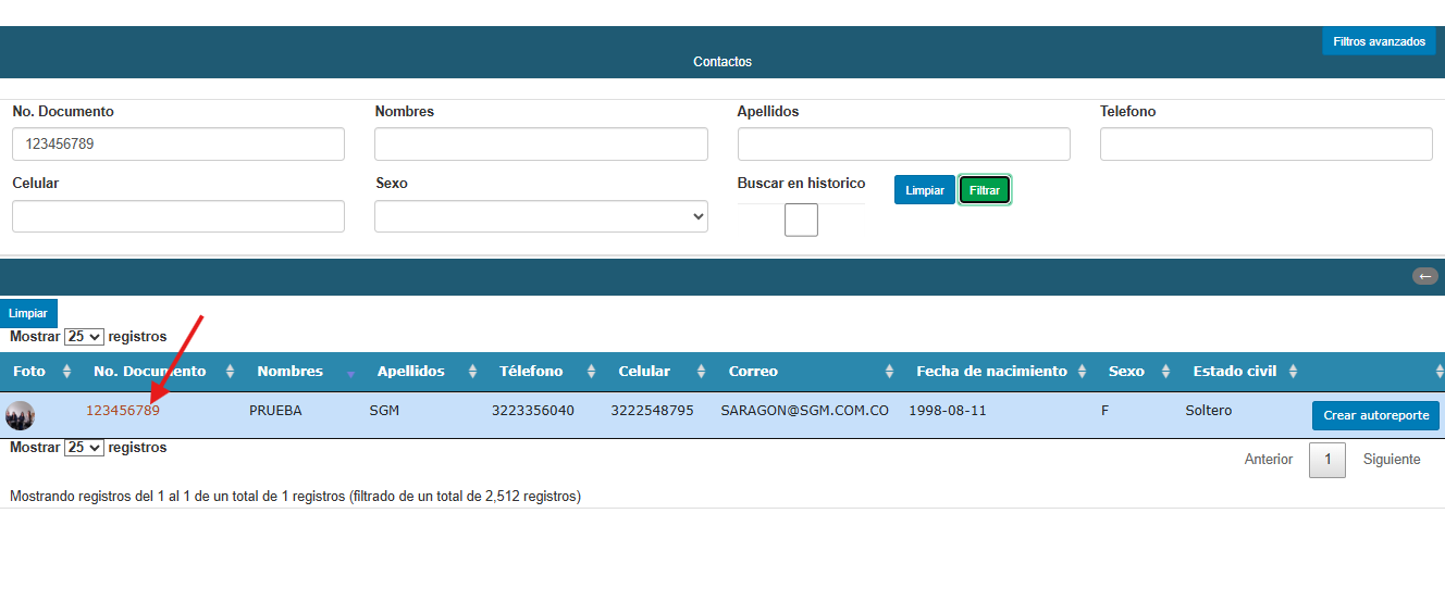 Colocar el documento del paciente y posteriormente dar clic en "Filtrar"