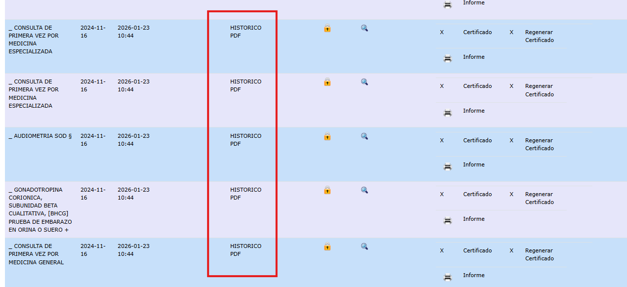 Y podrá visualizar los HISTORICOS PDF como el cargue de PDF que se recibió previamente con el equipo de SGM: